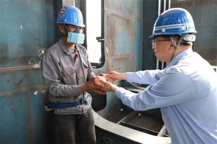 自大干二季度的號角響起,廣大蕪船人加壓奮進、只爭朝夕、大干特干在生產線上譜寫奮斗的贊歌。值此國際勞動節(jié)之際,公司黨委組織開展“五一”慰問送關懷活動,向節(jié)假日堅守崗位,為百億級目標連續(xù)作戰(zhàn)奮斗的一線造船人送去暖心的慰問和鼓舞。