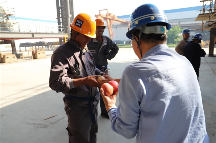每一份堅守和奮斗都值得尊敬。黨委委員、工會主席深入現(xiàn)場進行慰問,為員工送去食品、水果、飲料等物資和節(jié)日的問候,感謝他們節(jié)假日放棄休息時間,堅守崗位,為公司的生產任務奉獻。他強調,公司處于高速發(fā)展進階的關鍵期,第一季度實現(xiàn)開門紅,這些都是大家上下一盤棋、齊心協(xié)力奮斗的成果。進入二季度,任務目標更加緊迫,希望大家在工作中一要注重創(chuàng)新創(chuàng)造,改進方式方法,提升工作效率;二要始終牢記安全生產的理念,時刻緊繃安全之弦,守住“四個底線”;三要大力發(fā)揚愛崗敬業(yè)、爭創(chuàng)一流、艱苦奮斗、勇于創(chuàng)新的勞模精神,苦干實干,創(chuàng)造價值,全力推動公司形成向江向海發(fā)展的新局面。