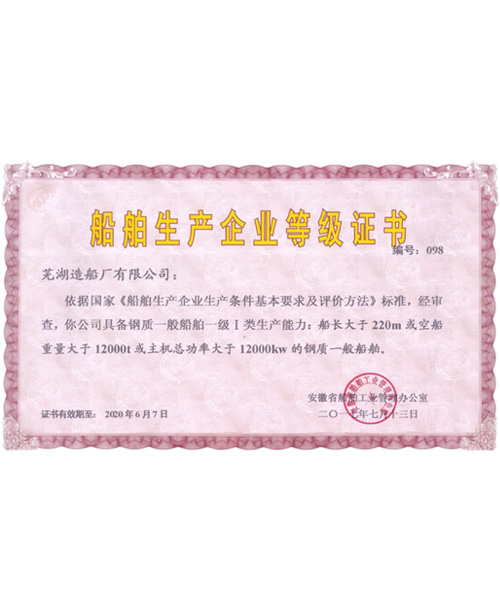 • 船舶生產企業等級證書